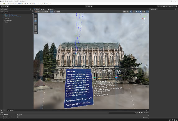 - Completed: Unity environment setup and required plugins; 3DGS file import; VR nav prototype; reconstructions for the central square and several key buildings; MVP demo and peer feedback.